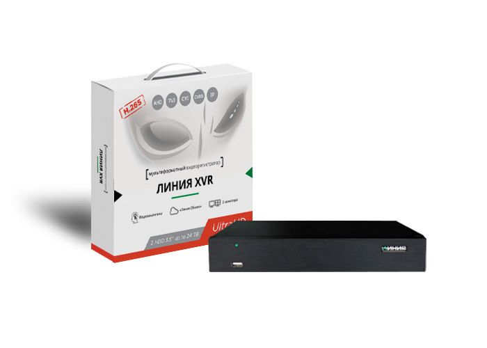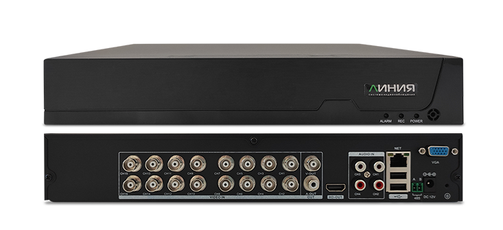 Видеорегистратор AHD/TVI/CVI/CVBS 16 каналов видео + 4 канала аудио или 16 IP 8МП; Linux OS, H.265, H.264, MJPEG, Пентаплекс; Разрешение и скорость записи: 16 каналов: 8МП х8к/с, 5МПх10к/с,4MПх8к/с,2МП х18к/с на канал; Для IP - 15к/с на канал; Видеовыходы независимые: HDMI, VGA ; 10/100 Mbit Ethernet; TCP/IP, ONVIF, RTSP, DVLN; Полноценное локальное и удаленное администрирование ; «Линия Облако», «TURN» ; 2 USB; Сетевой клиент для iOS, Android ; 2xSATA HDD до 14Тб (поставляется без диска); DC 12В/4000мА; 326х250х54мм; 0°…+55°C